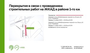 15 и 17 ноября с 2 до 2.30 ночи будет полностью перекрываться участок на 1-м километре МКАД. Об этом предупреждают Департамент транспорта Москвы и ЦОДД.