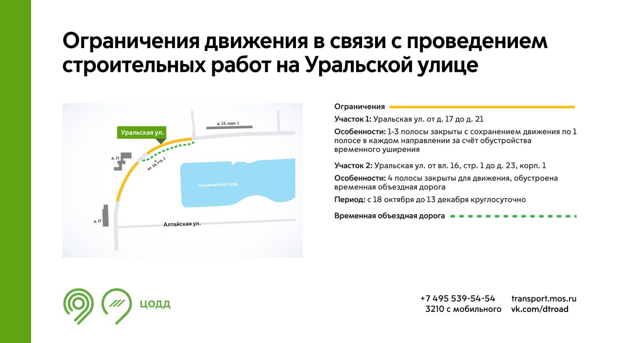 Частичное перекрытие улицы Уральской потребовалось для строительства станции метро «Гольяново», которая появится на пересечении улиц Уссурийской и Сахалинской. В ближайшие недели ООО «Ситистрой» начнёт прокладку тоннеля от метро «Щёлковская» в сторону будущей станции. Обозначенный срок окончания строительства – 3-й квартал 2028 года.