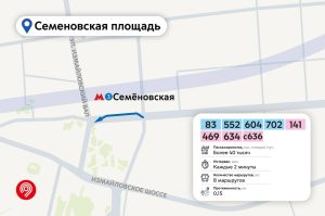 С завтрашнего дня выделенка даст гарантированную полосу автобусам восьми маршрутов: 83, 552, 604, 702, 141, 469, 634 и с636. Это означает, что проехать по Семёновской площади на автомобиле станет ещё сложнее. Лучше объезжать проблемное место по Ткацкой-Малой Семёновской или по Измайловскому шоссе-Большой Семёновской.